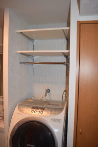 洗濯機の上の壁に棚を設置。
