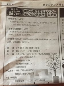 社会福祉協議会さんが開催する「誰もが集えるリビング・子供の居場所」