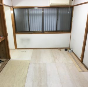 中央の柱は取外しできませんでしたが、一部壁を取り除き、二つの引き戸を取り付けます。