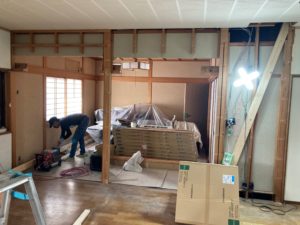 壁を解体した、リビング側からの写真です。